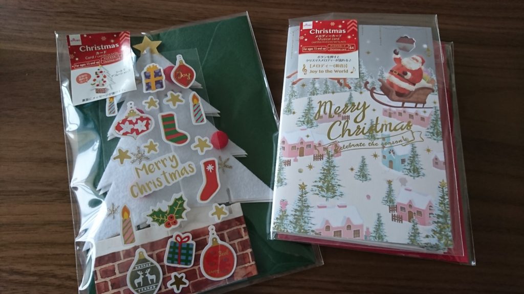 メロディーが鳴るものと立体に組み立てて飾れるものと大きく分けて2種類ありました。さずがにメロディー&立体は無かったのですが(ある意味安心)、クリスマスまでのひと時に生徒ちゃん達を和ませてくれることを願ってメッセージも書き入れました。